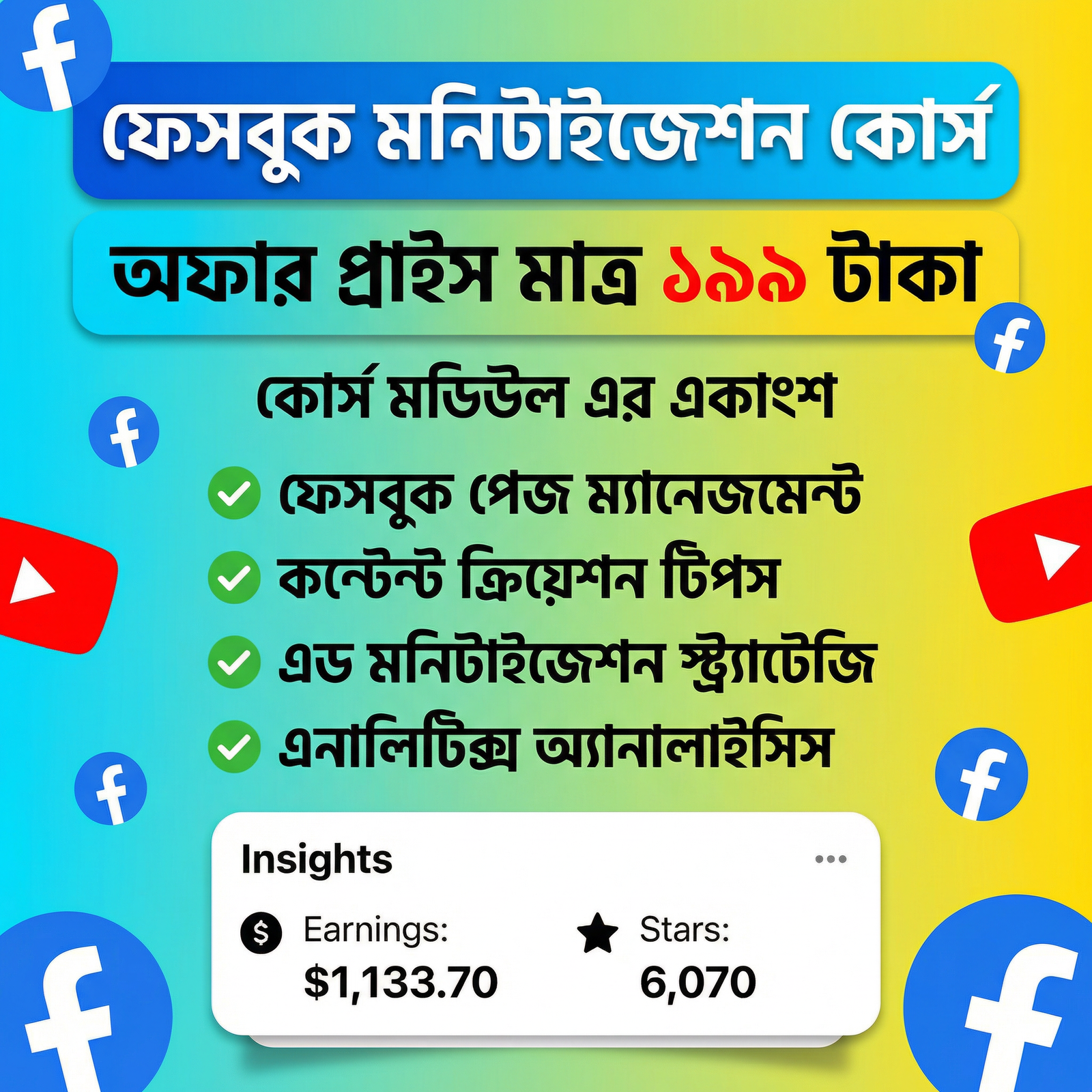 ফেসবুক, ইউটিউব, মনিটাইজেশন সিক্রেট কোর্স
